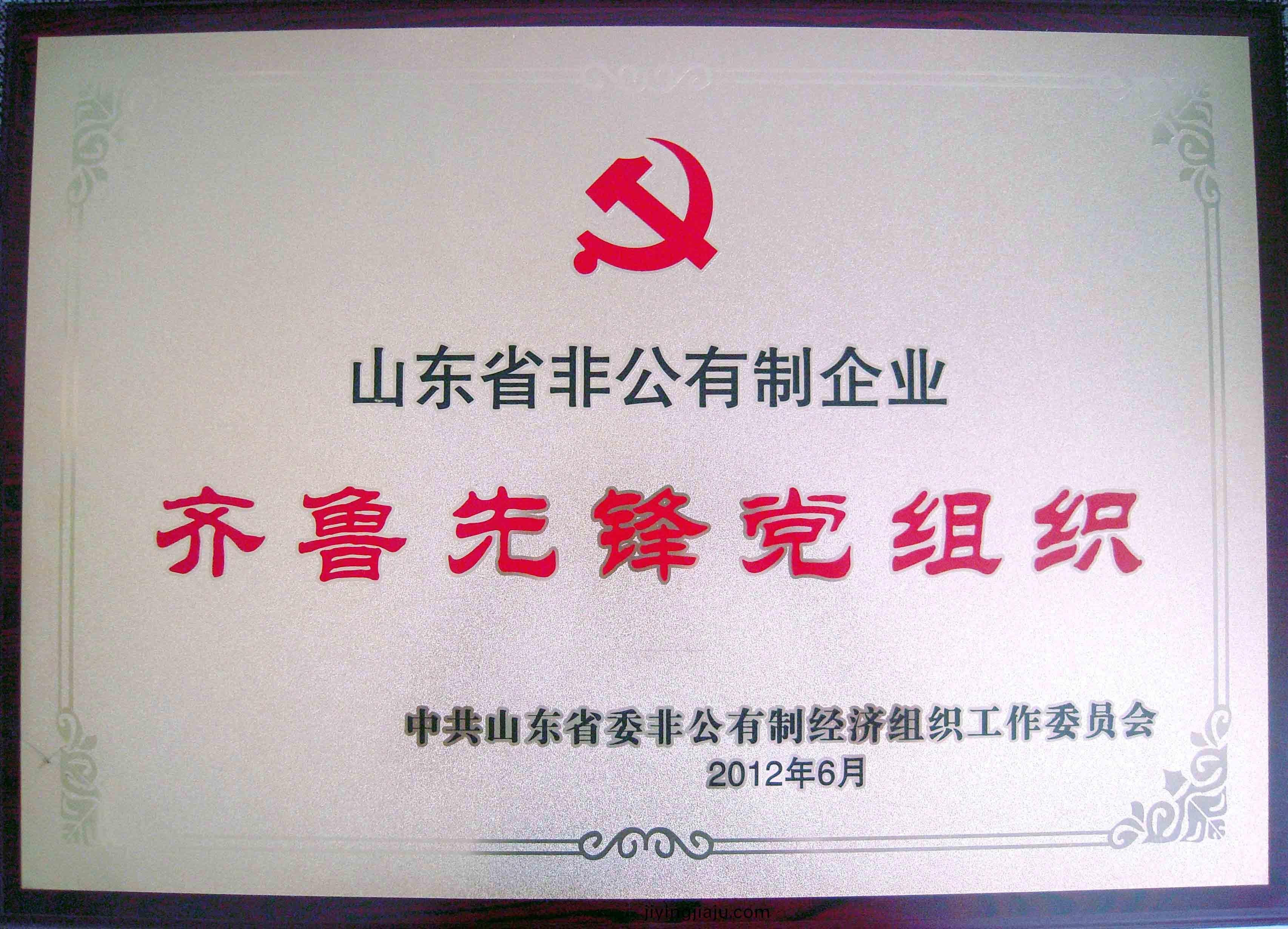 公司黨(dang)總支榮穫(huo)“山東省非公有製企業齊魯先鋒黨(dang)組織”稱號